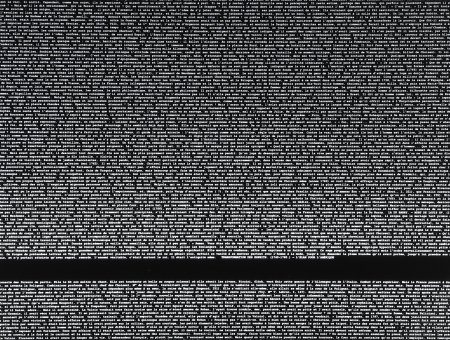 This piece is literally a photograph of history: the monumental History of France written over 30 years by Jules Michelet at the National Archives. This huge text, transformed into a negative film, is a photo-print before printing; it still hasn't received its flash of insulation.
