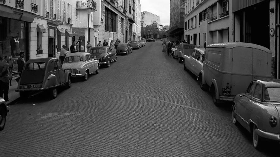 « Taken from the film À bout de souffle directed by Jean-Luc Godard, Julien Audebert has reproduced the scene in which the young delinquant is caught by the police at the carrefour of Rue Campagne-Première whilst at the same time totally eliminating the central character. »