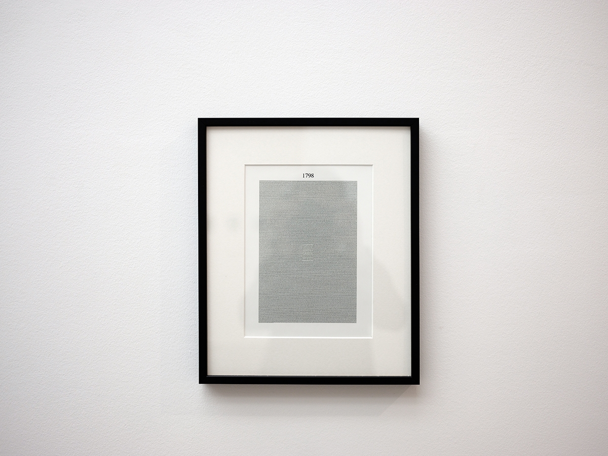 Inclusion (1798) est un montage entre l’Essai sur le principe de population de T.R. Malthus paru en 1798 et le Alien and Sedition act de 1798 , texte de loi américain visant à protéger les Etats-Unis des « citoyens étrangers de puissances ennemies ».