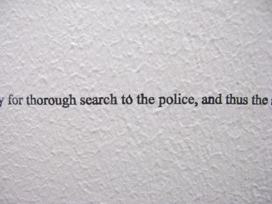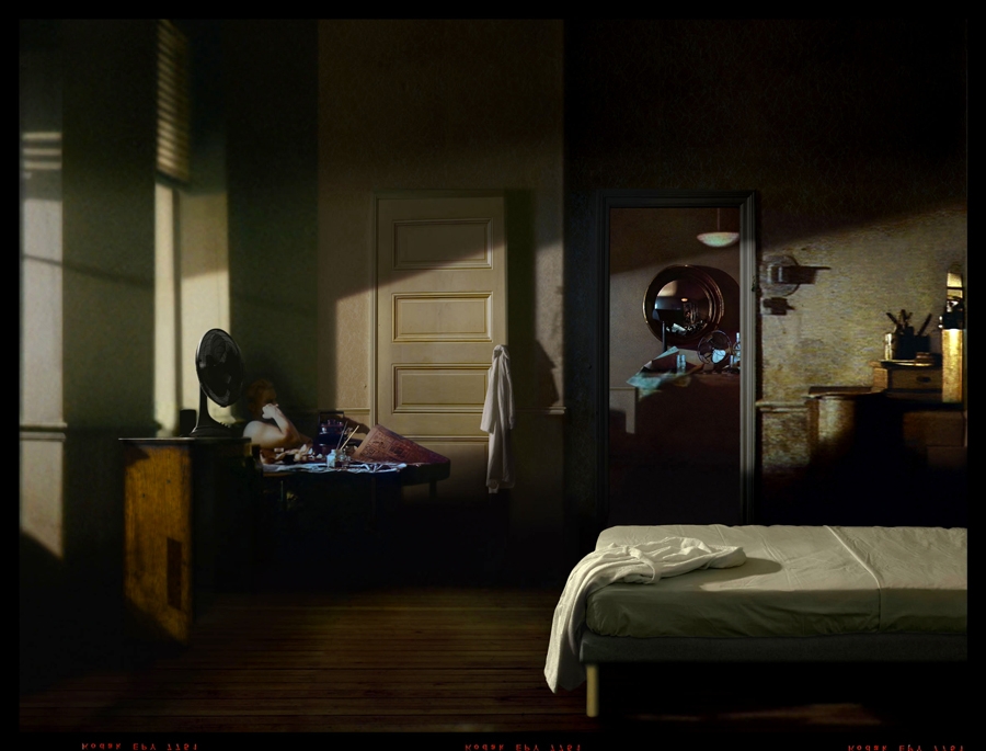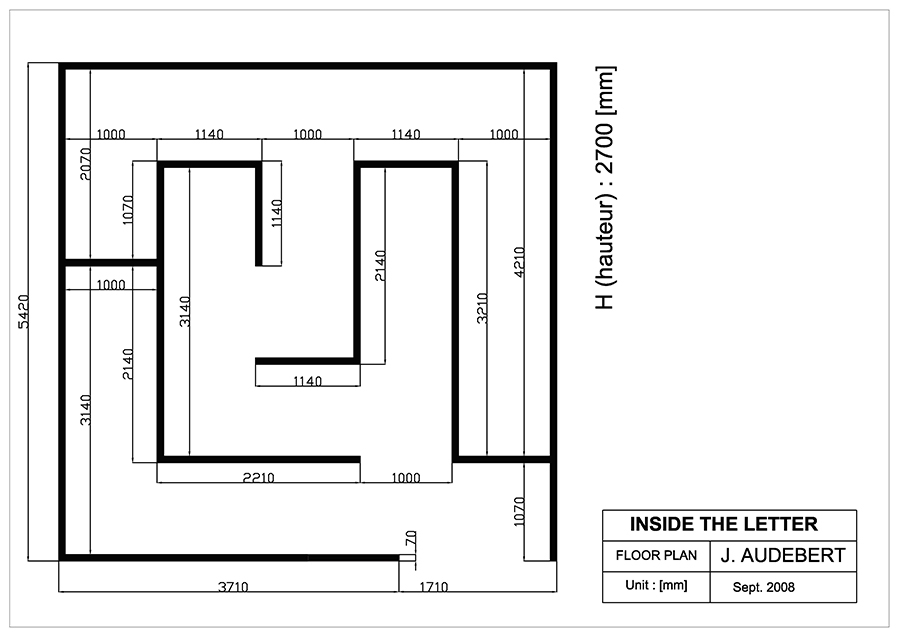 The installation Inside the Letter (the Clue) confronts text and image. Taken from the short story of Edgar Allan Poe, the text of The stolen letter is written onto the walls of a labyrinthique space and is displayed on a single line, 54 metres long. In the center of the labyrinth, an Ektachrome made from a reconstruction of a picture from Blade Runner shows a room within a mirror reflects a tattooed woman. This juxtaposition of elements (visual and textual) leads the viewer to the detail (the tattoo) or infinitesimal sign enabling him to sort out the puzzle. This also means that we should learn again how to see.